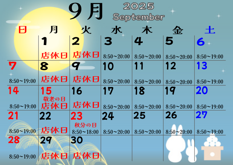 サポート東船橋店9月の営業カレンダー